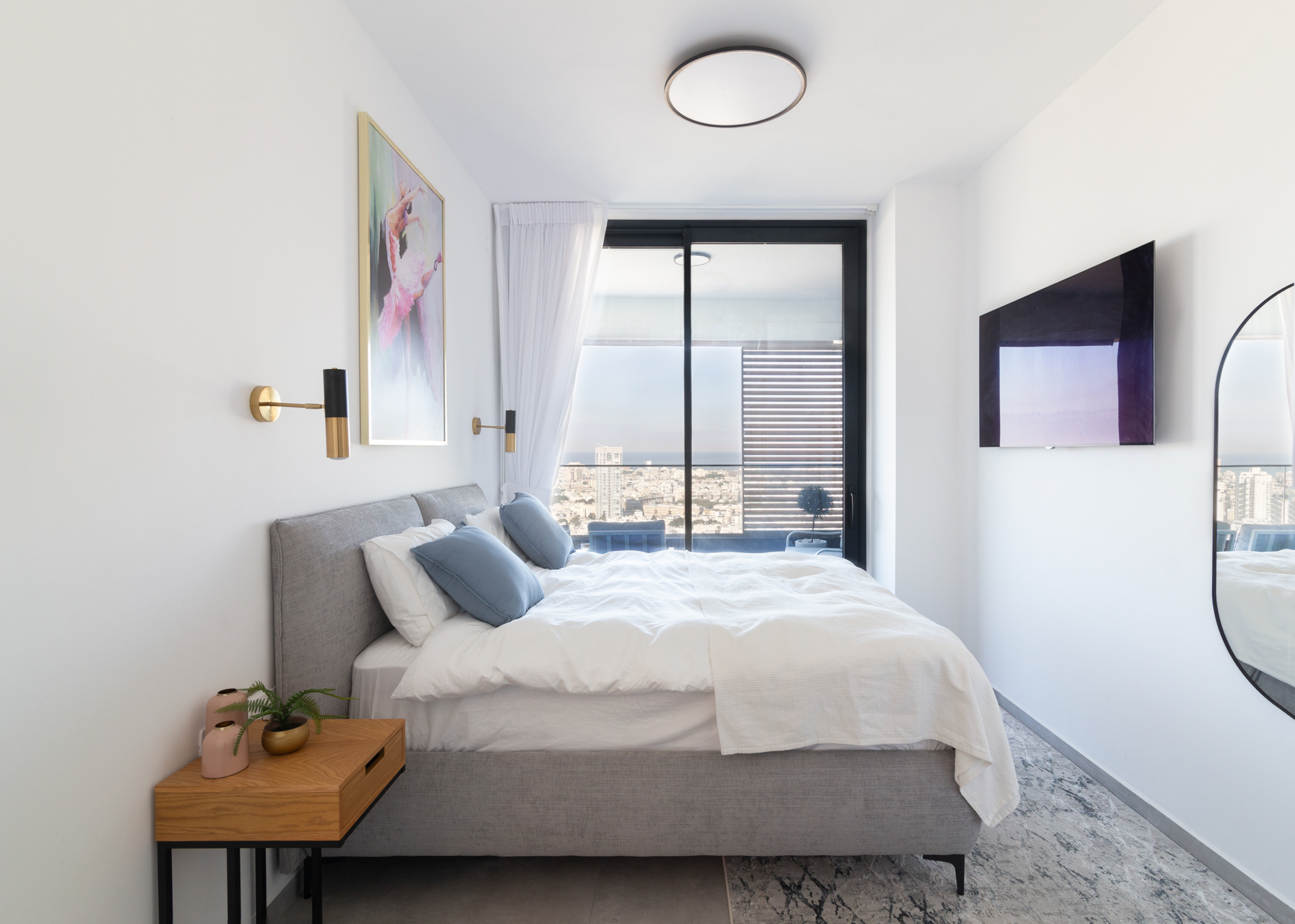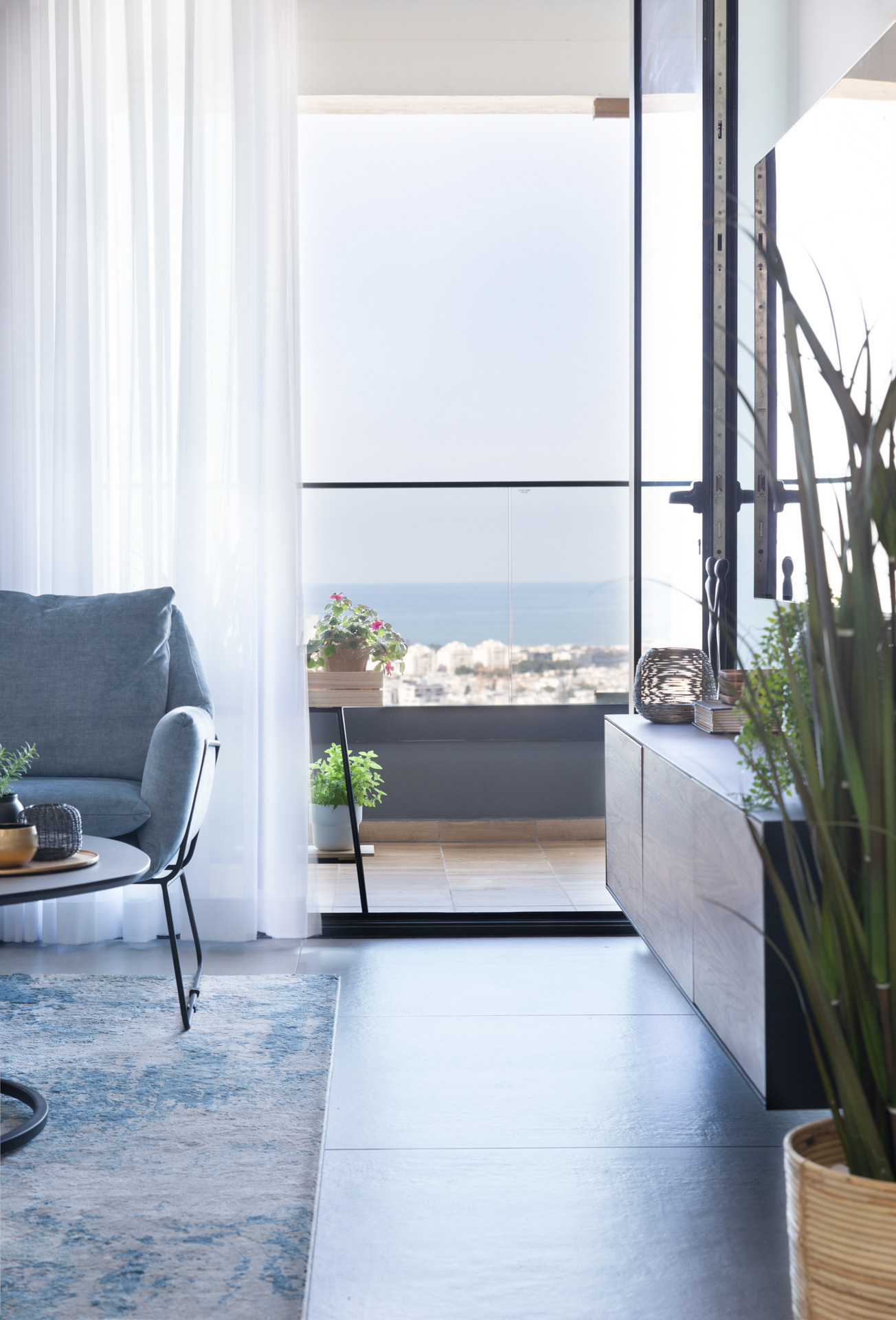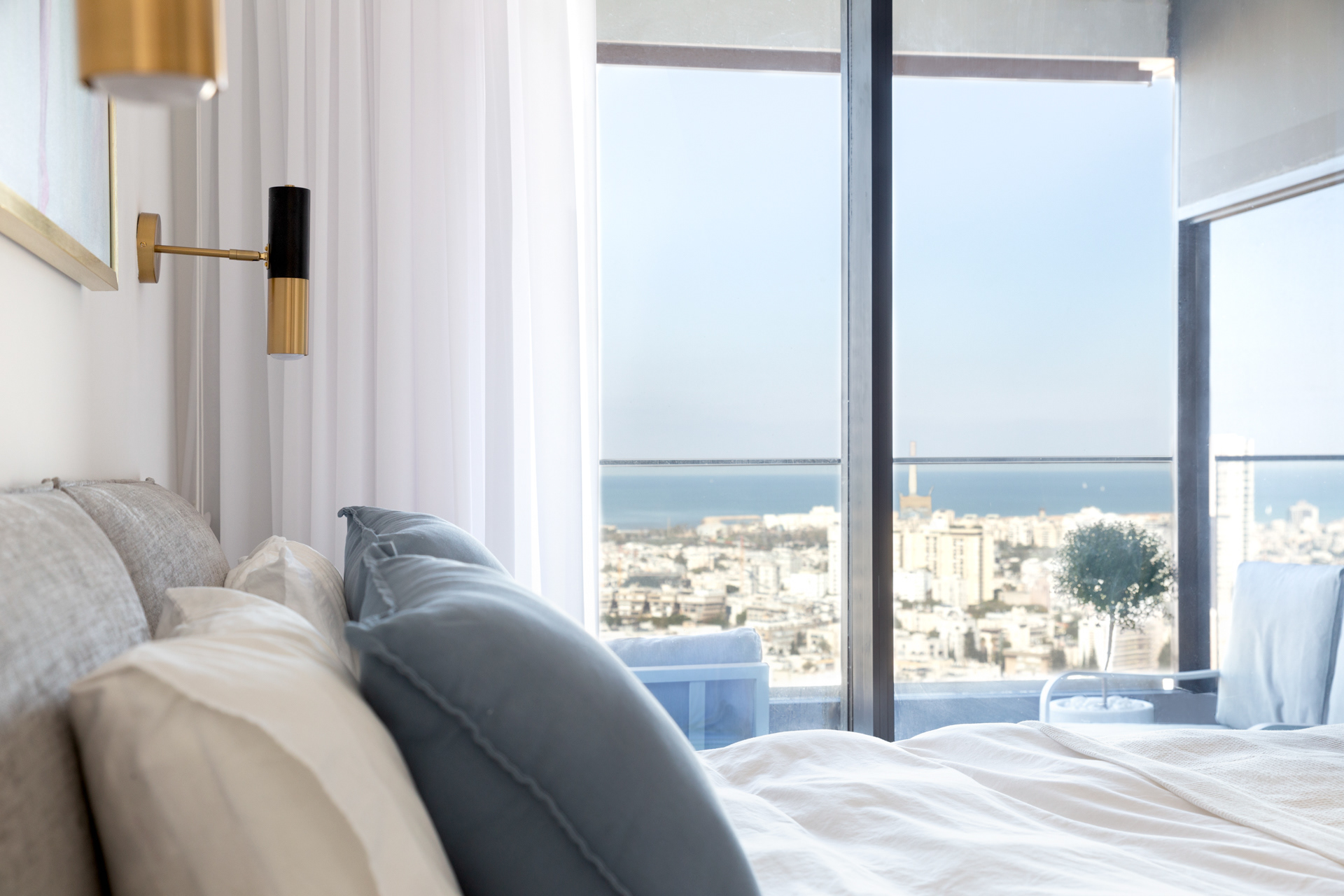 זוג הורים ,שלושה ילדים מתוקים וחתול הגיעו אליי דרך המלצות בפייסבוק דירה בקומה 29 בבניין יוקרה בת"א הצופה לים עם נוף אורבני עוצר נשימה עיצוב והלבשה שלי